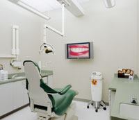 The entrance and waiting room design have the patient in mind, but with a different look. Furniture with subtle, yet inviting, colors in shades of yellow and blue is complemented by artwork. Though the operatories and services areas are lit with fluorescent sources, ceiling-recessed MR16s highlight the wall-mounted prints and give the space a residential feel. While the operatories enjoy 100 footcandles of illumination, the entrance and waiting area are lit to 40 footcandles, low enough to create a calming atmosphere, but bright enough to allow patients to fill out required paperwork.