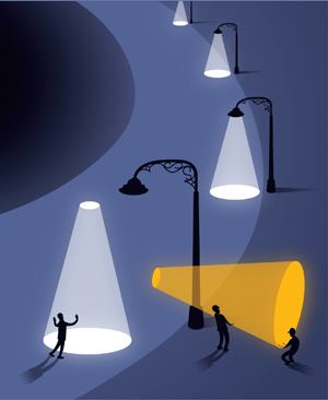 Though LED technology has advanced significantly since that demonstration, Armstrong still worries about the lack of considered optical design for LED streetlights. Whereas luminaires outfitted with conventional lamps need refractors to deliver candlepower to the roadway, LEDs, a point source, provide a more directional light than their filament-lamp counterparts. But to reduce glare and provide the contrast necessary for driver and pedestrian visibility, Armstrong would like to see fixtures in which the LEDs are aimed at about 60 degrees rather than the 72 degrees of HID or HPS luminaires.
