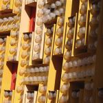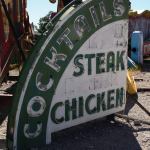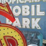 One of the most popular signs found inside the Neon Boneyard is the colorful Stardust Hotel and Casino spire. Created by AdArt Sign Company for the hotel casino, the sign design changed through the years to reflect popular design trends of the 60s, 70s and 80s. The Neon Museum’s collection features several sections of each version of this iconic sign.
