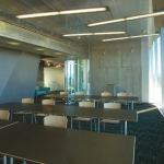 The spirit of the optical sciences also informs the division of the building into “blind” and “seeing” spaces. Extremely light-sensitive research is conducted in laboratories along the southern, windowless wall of the building—the “blind space.” Here Richärd+Bauer designed a simple and economical solution to the high ambient-light levels needed for teaching and priming experiments, and the low light-levels required for experiments which involve precise measurement of lasers, mounting standard T8 fluorescent lamps on a chasse alongside dimmable 90W PAR38 incandescent uplights. Using off-the-shelf products, Richärd+Bauer’s laboratory lighting system is not only effective, but also easy to use and maintain.