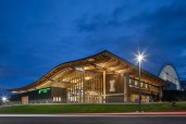 A contemporary downlight family, BASYS provides efficiencies as high as 81 percent, contains a lower parabolic reflector with a 45-degree cutoff, and includes 4- and 6-inch-aperture models that take ceramic metal halide, compact fluorescent, and low-voltage lamp sources. Functions include uniform wallwashing, hot aiming, and pull-down relamping.