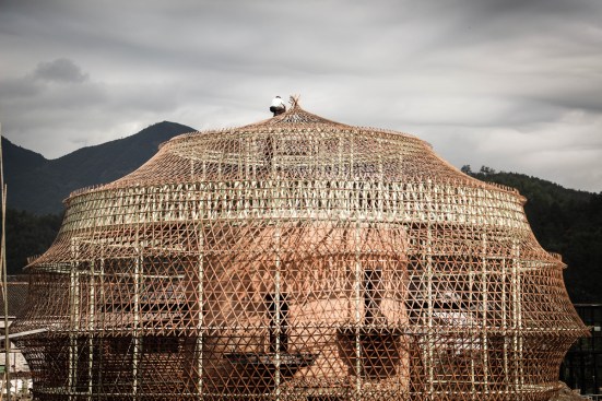 Completed in 2014, the project comprises three bamboo and mud structures—the nightingale, the dragon, and the peacock—that serve as hostels in the village of Baoxi in China.