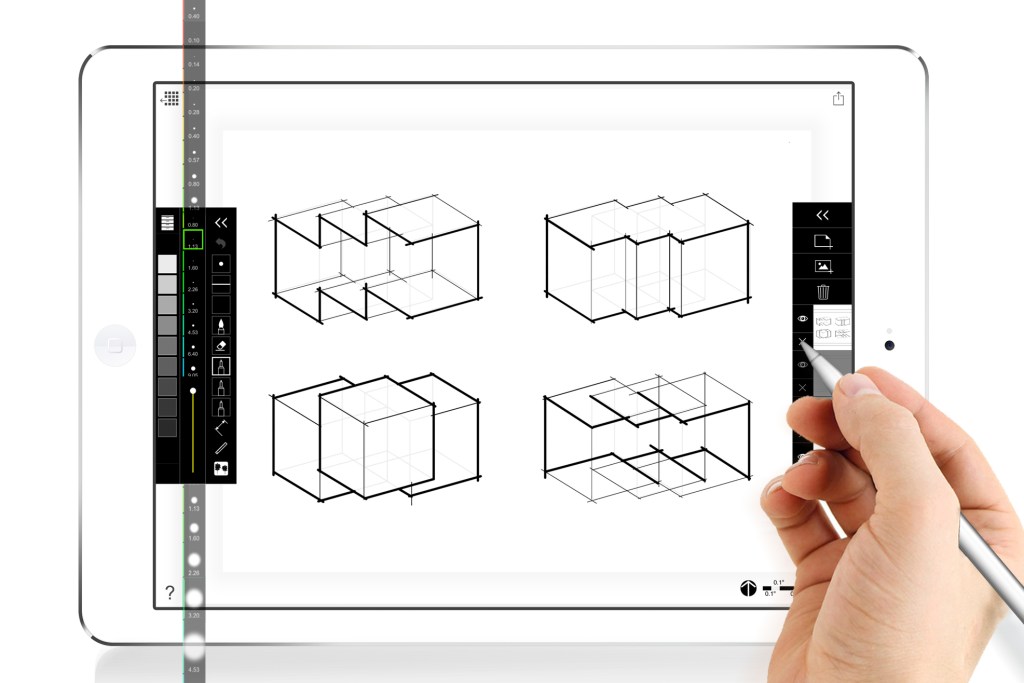 Perhaps it was inevitable then that Morpholio Apps, the New York–based studio intent on encapsulating the entire design-ideation process in their mobile apps, today launched ScalePen, a patent-pending way to draw with different line weights, or stroke thicknesses, in its Trace app (free, iPad and iPad Pro). As a user draws in Trace, ScalePen checks the drawing scale and zoom level and then dynamically assigns a calibrated set of technical pens appropriate for use at that view. No more getting stuck with heavyset strokes at a close-up view, or scrawny lines when zoomed out.