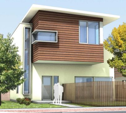 The market-rate homes, constructed with SIPs, rely on passive and geothermal heating and cooling, solar arrays, and other measures to achieve net-zero energy use. Affordable units feature modular construction with 2×6 exterior wall framing and will include solar panels or solar-ready wiring, depending on whether additional grants come through. All the 1,000-square-foot to 1,800-square-foot homes are stylishly modern, with metal roofs and stucco, fiber cement, and wood exteriors.