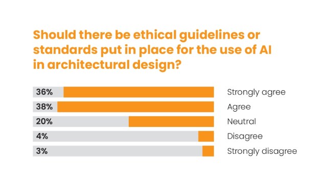 As AI adoption becomes more widespread, concerns about its effect on job security are emerging. Architects and other AEC professionals acknowledge AI technology’s groundbreaking ability and the hurdles it brings. As the industry grapples with these shifts, the need for ethical guidelines grows ever more crucial, with 74% of survey respondents in agreement.