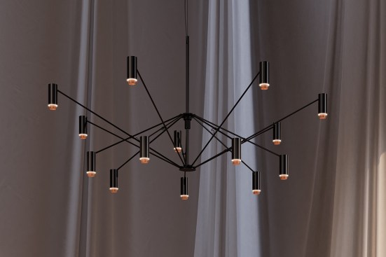 Marset’s shape-shifting W lamp can be expanded and contracted to brighten large and small areas. Masterminded by designers Pedro Ochando and Claudia Pérez, the fixture sports 14 dimmable spotlights and aluminum and polycarbonate diffusers. marset.com