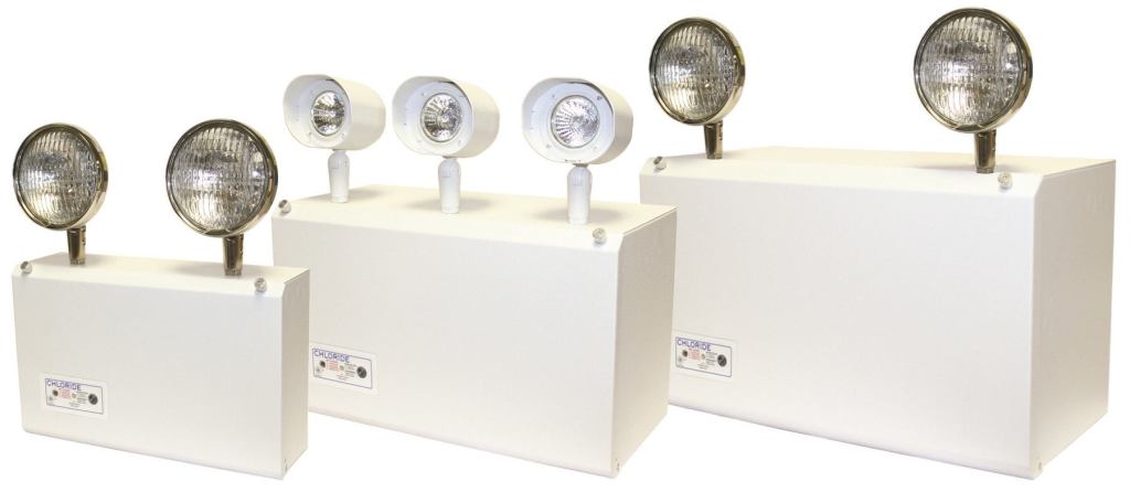 Max-Lite Series, Chloride Systems • For use where oil-, water-, and dust-resistance is required, Max-Lite is certified to NSF Standard 2 Splash Zone, UL-listed for use locations from zero to 40 C, has an onboard IR receiver standard, and is preprogrammed for an optional handheld device that allows for remote testing. Self-diagnosing equipment monitors critical functions, and it is available in 6V or 12V, and 25W to 150W units with tungsten or halogen lamp heads. Sealed lead-calcium or nickel-cadmium batteries supply 90 minutes of emergency power.
