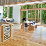 For its new line of engineered, reclaimed hardwood flooring, V… For its new line of engineered, reclaimed hardwood flooring, Viridian Reclaimed Wood sourced wood from old shipping crates and pallets as well as gym bleachers to create four species categories: Jakarta market blend (tropical mix color shown), European beech, white oak, and CVG Douglas-fir gym bleacher. Comprising a nine-ply birch core with a 4mm wear layer, the 5/8"-thick planks come in widths of 2-1/2" to 7-1/2" and average lengths of 4' to 5'. The VOC-free flooring’s UV-prefinished option (shown) features a microbeveled edge, while the unfinished option has square edges. viridianwood.com