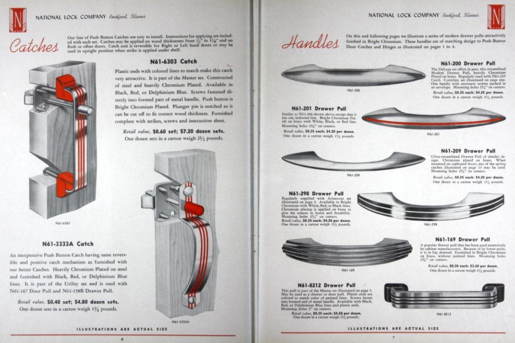 Modern Cabinet Hardware, National Lock Co., Rockford, Ill., c. 1950