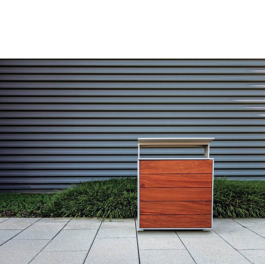 Corrosion-resistant aluminum meets FSC-certified Jatoba hardwood in new litter and recycling bins from Forms+Surfaces. Single-stream receptacles have a 24-gallon liner, while split-stream receptacles have two 18-gallon half-liners. Standard powercoated finishes are aluminum texture and slate texture, though non-standard colors can be specified; optional rain covers can be powdercoated to match the lids. forms-surfaces.com