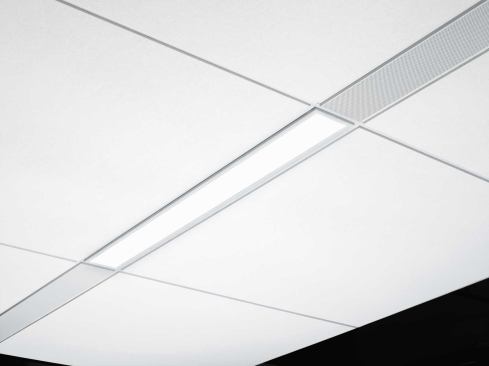 Lunera’s Lunera 5400 Series, an LED fixture designed specifically for TechZone, is available as a recessed 9/16-inch tegular for the ceiling and a lay-in fixture for a 9/16-inch grid or a 15/16-inch grid. It measures 48 by 6 by 1.19-inches.