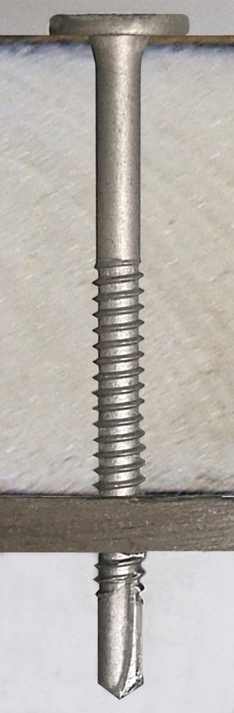 Triangle Fastener Corp. has introduced the Concealor DP3 to its Concealor line of fasteners. It is designed to attach architectural insulated panels to steel, among other materials. It is available in the following sizes: 1/4-14 x 2-, 3-, 4-, 5- and 6-inch. The fastener is capable of drilling up to 1/4-inch-thick steel and is coated with a long-life coating. The 5/8-inch diameter head provides good pullover loads and reduces dimpling in foam panels. In addition, an un-threaded section eliminates jacking when installing the insulated panel.