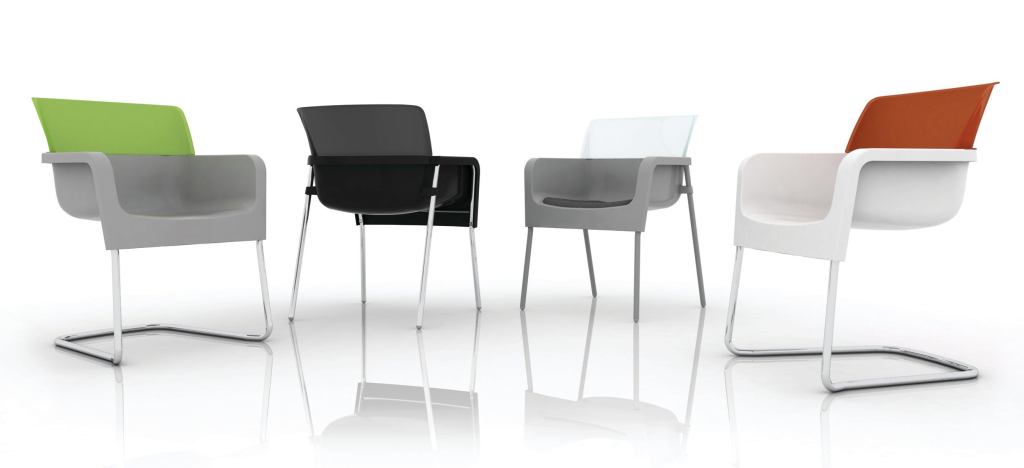 Otis by Harter from Izzy is a hybrid between a side and lounge chair featuring a molded piece of Petra thermoplastic polyester made with 100 percent post-consumer material. It can be used for lounge seating, in a reception area, in a conference room, or as a guest chair in an executive office. An upholstered seat is optional.