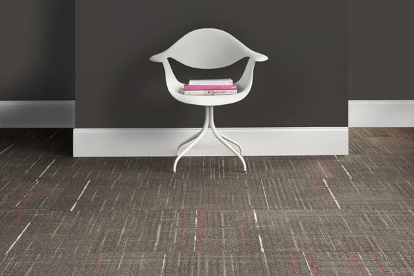 Playful linework and texture on the modular carpet’s face fiber top a backing layer that offers two eco-friendly options.