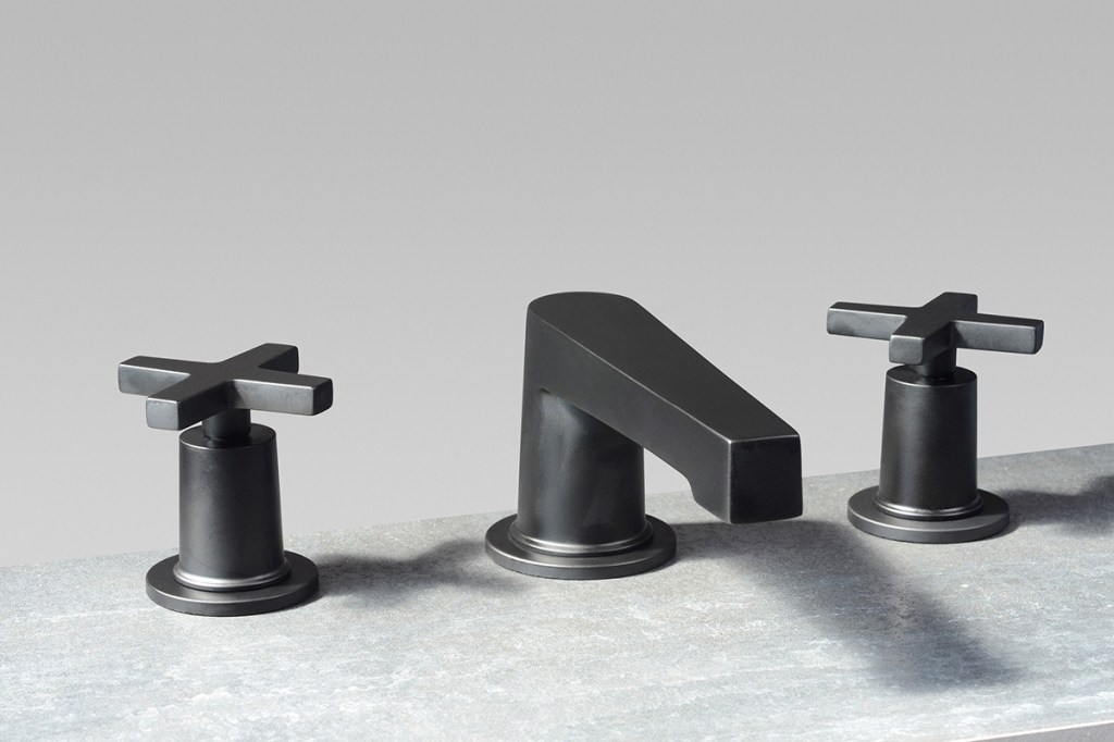 Designed by Santa Ana, Calif.–based manufacturer Newport Brass, Dorrance is a widespread faucet that meets water conservation standards approved by the California Energy Commission, and complies with EPA WaterSense requirements. Made of solid brass shaped into an industrial geometric form, the 2.3”-tall faucet has a 5.5” spout reach and comes with ADA-compliant cross or lever handles. Dorrance is available in 27 finishes, including matte black, polished chrome, and a selection of physical vapor deposition (PVD) choices. newportbrass.com