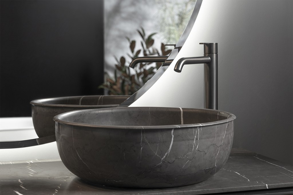 Inspired by antique rolled edge metal bathtubs and carved from a single block of marble, the Prime washbasin was designed by Danish architecture firm Norm Architects for Spanish bathroom manufacturer Inbani. Measuring 5.9″ tall, this top- or undermounted sink features a smooth, curvilinear shape and comes in 13.7″- or 17.7″-diameter options. Available in three new marble finishes (pietra gray marble shown). inbani.com