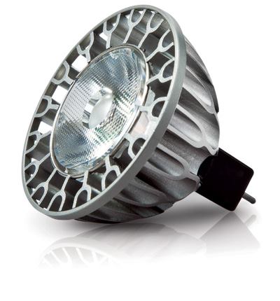 Essential MR16 LED Narrow Flood 2700K Lamp, Soraa Part of Soraa’s family of replacement lamps, the Essential MR16 LED Narrow Flood 2700K is designed to match the performance of a 40W MR16 halogen. The Soraa lamp has a color temperature of 2700K, a CRI of 80, a 24-degree beam angle, and uses 10.5W. It works with magnetic and electronic transformers and dimmers. It is UL- and CUL-listed, and rated for dry locations only. soraa.com