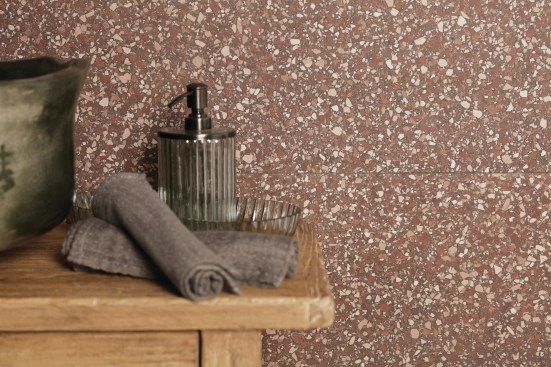 13. FS Road from Peronda is another take on timeless terrazzo, this one in a tight pattern available in 90-by-90-centimeters format. The tile is shown above in Mars, a warm terra cotta, but it’s also available in Moon, a cool green. peronda.com