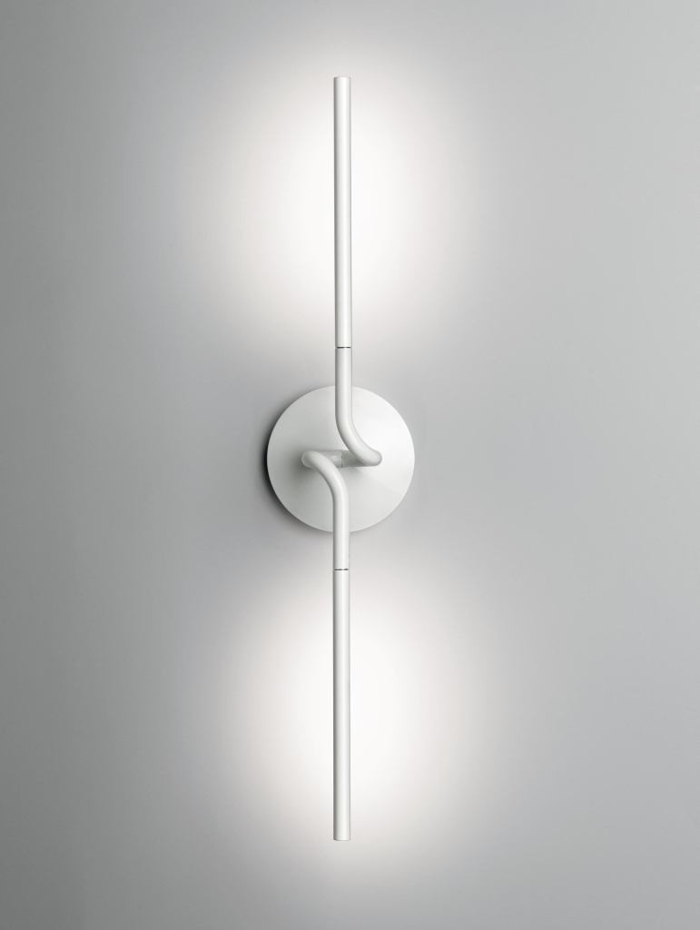 Lightspring is a wall-mounted LED fixture from Flos, designed by Ron Gilad. The injection-molded methacrylate diffuser has a photo-engraved internal finish and offers indirect light. The diffuser is connected with a magnet to the higher of two curved arms that extend from the extruded aluminum body of the fixture. Lightspring is available in Single, a 400mm-tall 4.5W option, and Double (shown), a 620mm-tall 9W version with a second diffuser mounted to the fixture’s lower arm. • www.flos.com