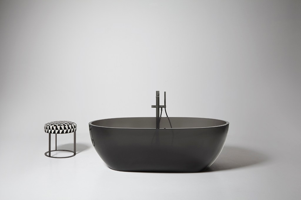 As part of the Italian manufacturer's new collection, this asymmetrical bathtub exhibits organic, curvilinear forms.