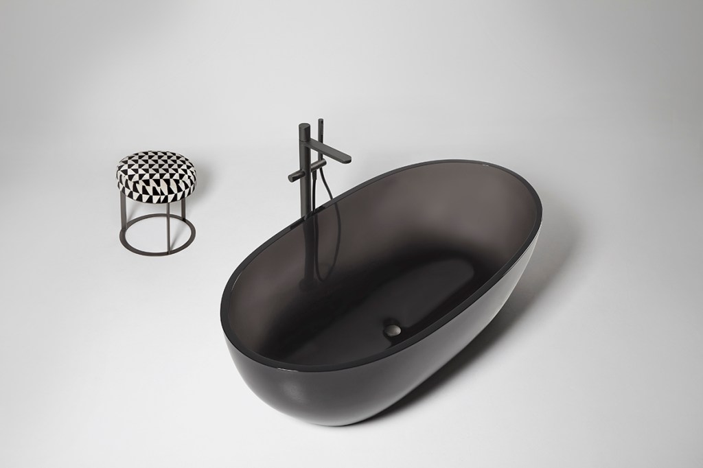 Made of the studio's proprietary resin material, this minimalist basin weights 30 percent less than a stone bathtub.