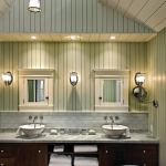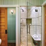 Facing away from the water and closer to the road, the bath’s windows are high. Whitten added a big dormer with an operable window on top that funnels in sunlight and air, and the lighting scheme is a mix between contemporary and old-fashioned. “The fixtures are consistent with the original cottage, but are used in a modern way,” he says.