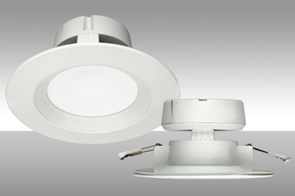 J-Box Downlight, MaxLite • This recessed downlight, suitable for both commercial and residential retrofit applications, eliminates the need for a traditional recessed housing through a built-in junction box. J-Box is available in 4” and 6” diameters. Offered in 8W, 9W, 10W, or 14W, the luminaire comes in 2700K, 3000K, or 4000K with a minimum CRI of 80. The fixture requires 120V and is TRIAC dimmable. Available in a standard white trim finish. • maxlite.com