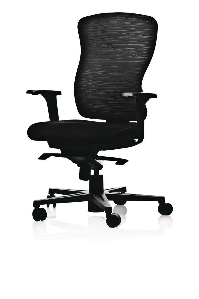 The Keilhauer Sguig chair, released in 2006, has a glass-filled nylon polypropylene back that supports the spine from the T1 to L5 vertebrae. Sguig was designed by Eoos with gender-specific ergonomics in mind: the chair accommodates the seating patterns of both men (who tend to lean back) and women (who tend to pitch forward). Available in three electro-welded back patterns, the chair features polyester textiles that come in 12 colors. Arms, back height, tilt lock, and seat pan are adjustable. keilhauer.com