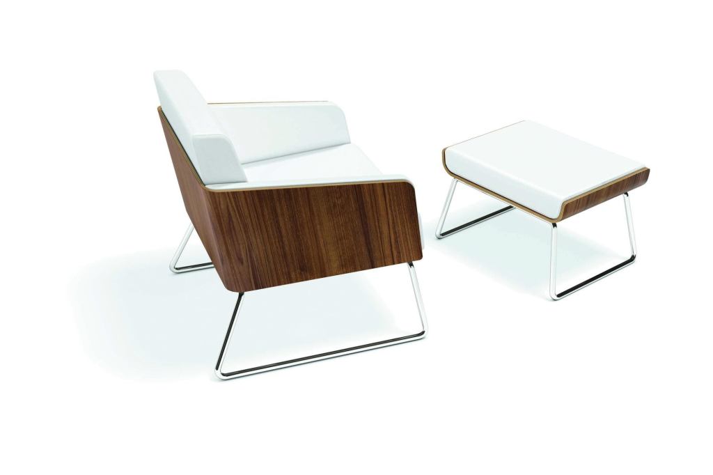 The Lyra collection is KI’s newest offering in lounge seating. A modern take on a classic design, Lyra uses a combination of low-VOCemitting wood, steel, and fabric to accommodate a variety of settings and qualify it for Greenguard Indoor Air Quality Certification. The foam cushioning material is made from a blend of 15 percent pre-consumer soy product, while the wood is FSC certified. A variety of sustainable fabrics are available. ki.com; 800.424.2432.