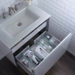 The Compact Vanity collection is designed for small bathrooms but still offers ample storage. Featuring modern styling on the outside, the unit’s standard interior components include a hanging tray and glass bin, dividers and crossbar, glass and aluminum construction, and slow-close drawers. Standard and special order colors are available. www.robern.com.