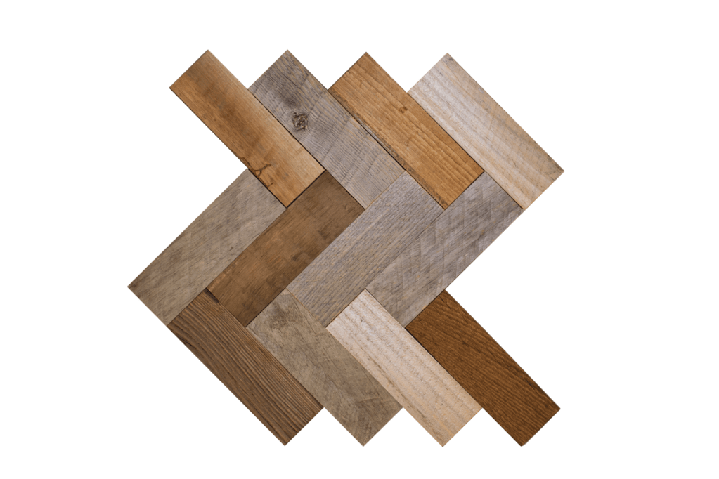 Hand-crafted from reclaimed yellow pine, Lakota is part of the Rawhide Flats Series by Fort Collins, Colo.–based Woodwöl (formerly Everitt&Schilling). A single 18”-long by 14”-wide module comprises 12 2” by 6” wood pieces arranged in a herringbone pattern. Available in a natural, unfinished look, or in five additional finishes, including whitewash, blue, and gunstock. woodwol.com