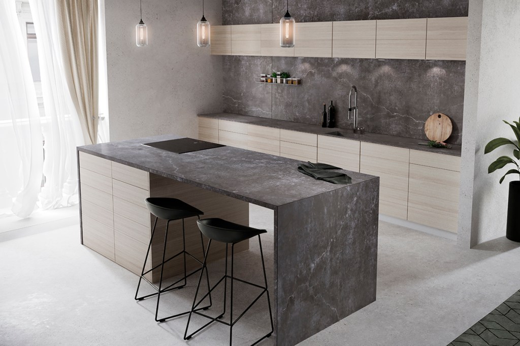 This quartz surface is offered with Cosentino's new, ultracompact thickness.