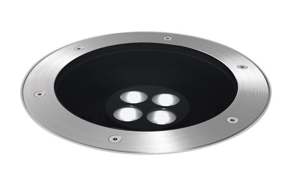 An outdoor inground luminaire, Keplero from Targetti will debut at Light+Building in two models. The first, Zoom, features optics that can be manually adjusted—via extraction, transfer, and rotation—to orient the light beam to offer soft, flood, medium-wide flood, and wide flood apertures. Joining Zoom is Gimbal (shown), whose optics can be adjusted up to 40 degrees at three beam angles for projecting light onto surfaces up to 98 feet away, such as facades, towers, and sculptures. Gimbal incorporates a four-chip LED board with acrylic lenses and offers direct beams. Both versions include aim locking.