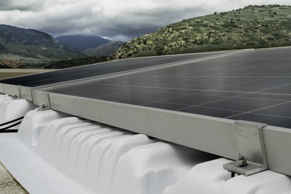 This nonpenetrating curb mount helps roofs support larger photovoltaic systems.