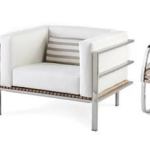 Designer Doug Levine’s Echo Collection for Link Outdoor uses polished stainless steel and plantation-grown teak for a neutral architectural form that can be incorporated in myriad outdoor room spaces. The collection includes two dining tables, dining chairs, two lounge chairs (one with an ottoman), a sofa, cantilevered side- and drink tables, a planter, a bench, and a coffee table. Five optional powder coats are available (white, steel, antique bronze, silver, and gunmetal) as well as natural, oiled, or weathered teak finishes. Link Outdoor, 972.385.7380; www.linkdesignsolutions.com.
