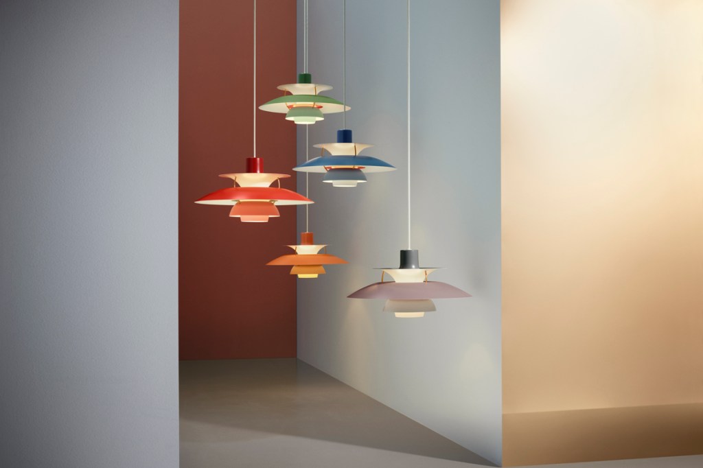 The PH 5 pendant, originally designed by Danish architect and designer Poul Henningsen in 1958, is a luminaire that has achieved design icon status. A bestseller for 60 years for Copenhagen, Denmark–based lighting manufacturer Louis Poulsen, to celebrate the fixture’s six decade milestone, in February, the company announced the release of eight new gradient colorways for the pendant: classic white, new white modern, hues of orange, hues of rose, hues of red, hues of green, hues of blue, and hues of gray.