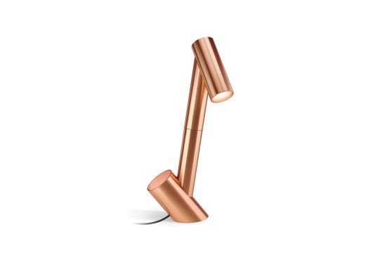 Designed to illuminate desktops or for use as a bedside reading lamp, this high-output, chip-on-board LED luminaire allows for both direct and indirect lighting, thanks to a fully rotatable head. Measuring 13″ tall by 2.25″ wide, the 4.6W fixture is available in 3000K with a CRI of 90-plus and an efficacy of 56 lumens per watt. Giraffa comes in gloss white lacquer, brushed copper (shown), and black anodized aluminum finishes, with a full range of dimming control. pablodesigns.com
