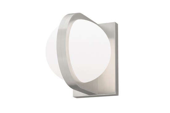 Held in place by a metal band, this 6.6″-diameter LED orb can be mounted vertically or horizontally on either a wall or a ceiling. The 27W Capture comes in 3000K with a CRI of 90, and delivers 1,000 lumens. The fixture requires 120V or 277V power and is dimmable by use of a low-voltage electronic dimmer. Available in satin nickel (shown) and matte white finishes. lbllighting.com