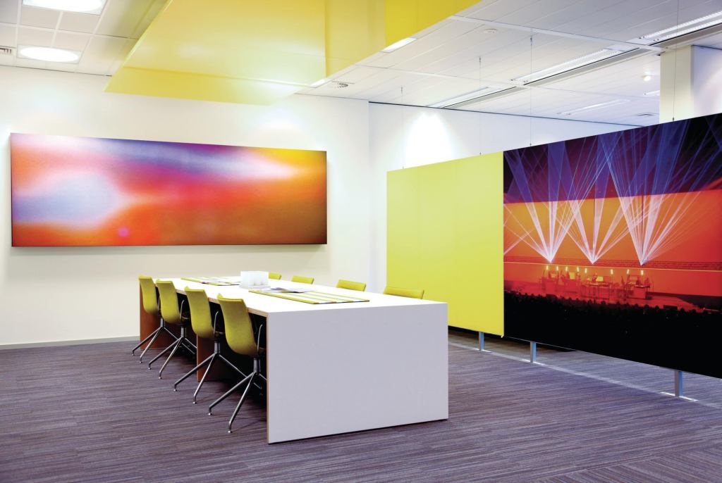 A collaboration between Philips Lighting and Kvadrat, Luminous Textile panels incorporate color-changing LEDs spaced 6cm apart on acoustic foam. Both driver box and power supply are integrated into each panel; the fixtures can be remotely programmed and managed. Kvadrat textiles with soft-cell technology are used to soften noise, and are held in tension within an aluminum frame. Panels are available in sizes ranging from 72cm by 120cm to 648cm by 120cm. • lighting.philips.com