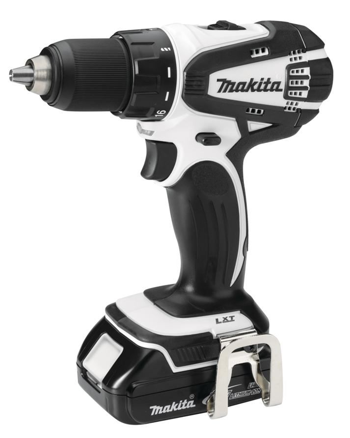 Makita’s new 18V Compact Lithium-Ion Cordless 1/2-inch Driver-Drill model LXFD01CW is powered by a two-piece, four-pole motor with strong front-end ball bearings and heavy-gauge copper winding on the armature. The tool delivers 480 inch-pounds of max torque and 290 inch-pounds of PTI torque. It has 16 clutch settings and weighs 3.3 pounds.