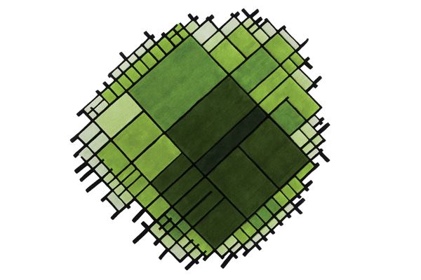 From French designer Matali Crasset for Italian rug maker Nodus, Microcosm is a hand-knotted wool rug whose array of green hues cut by black lines creates a level of abstraction that leaves room for interpretation. Crasset’s other rug designs for Nodus include a red floral burst and a historical ethnographic map of Chicago’s late Maxwell Street Market neighborhood. nodusrug.it