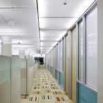 Architectural and Lighting Solution To add coherence to this single third-floor level, a series of urban planning concepts was employed. A large central atrium that pierces the third through tenth floors of the ten-story building became the ‘Town Square,’ around which the mailroom, copy rooms, visitors’ lounge, and public areas are arranged. Intersecting the Square is ‘Main Street,’ a large hallway off of which are conference rooms, a cafeteria, and a break room. Main Street also leads to the ‘Neighborhoods,’ open workstations situated against the building’s exterior walls.