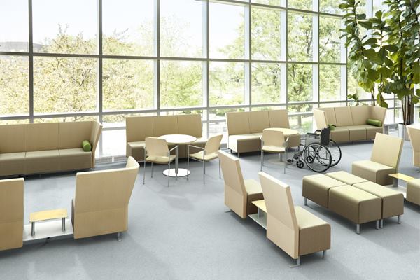 This healthcare seating system allows for open and semi-private spaces in waiting rooms.
