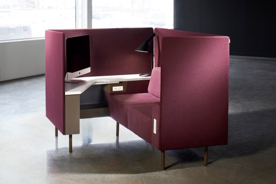 Designers Edward Barber and Jay Osgerby predict a future where individual workstations are no longer the standard. In their stead, the duo propose this modular couch system that aims to provide the comfort of residential furniture in office and open environments. Soft Work can be specified with moveable swivel table inserts, partition screens, outlets, and charging stations. Available in 138 colorways. vitra.com
