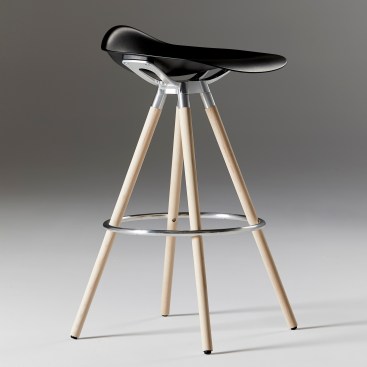 A collaboration with Los Angeles designer Don Chadwick, Alto features a contoured flexible shell seat with a die-cast aluminum frame and steel foot ring available in polished chrome or black powder-coated finishes. Available in bar height (approximately 34”) and counter height (approximately 30”) versions, Alto can be specified with maple, walnut, or ebony stained oak legs. humanscale.com