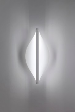 Shield can be mounted to walls and ceilings, suspended as a pendant, or attached to a stand as a floor lamp. The luminaires’ acrylic diffuser is bent into a convex form and offered in round, eye-shaped, and oval. Each of the three options—available in all fixture configurations—attach to the aluminum frame via two small cutouts on opposite ends of the diffuser’s 26-inch-wide diameter.
