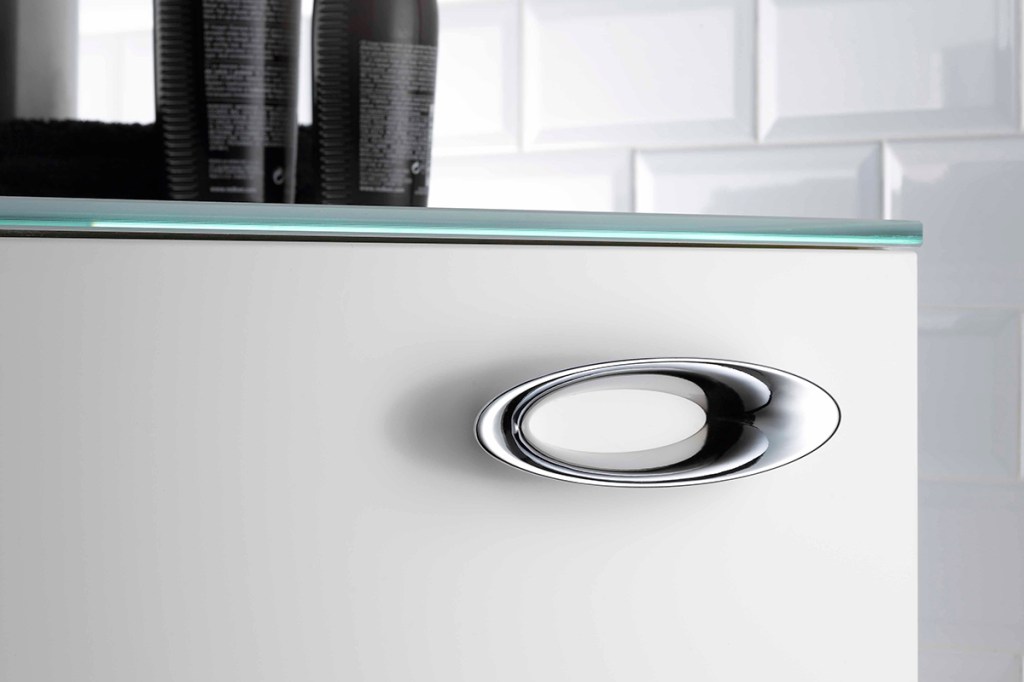Created by Swiss industrial designer Simone Viola for Italian manufacturer Klodea, the Oh collection of cabinet hardware was manufactured from a malleable alloy of zinc, aluminum, magnesium, and copper, known as zamac. Featuring an ergonomic design and a well-defined grip, this sculptural hardware is offered in polished chrome (shown) and matte gold, and in three sizes—2.5″, 4.2″, and 6.4″. klodea.com