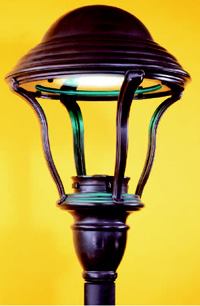 An ideal way to enhance a streetscape, park, or walkway while providing safety and security, the Greenfield Option is a dual illumination assembly that increases pathway and area lighting while minimizing fixture glare. The design allows up to 70W lamping in the lower section, providing extra light around the pole base, where decorative fluting creates a 90- to 360-degree light pattern. Ten different styles are available.