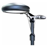 This pole- and surface-mounted lantern-style direct/indirect landscape fixture maximizes downward light distribution to site and pedestrian zones with tightly controlled beam spreads for visual comfort. Constructed of rugged, die-cast aluminum with a high-performance, high-efficiency internal spectral metal reflector, the luminaire is available with an optional black ballast cover and full cutoff light distribution for StarView compliance. Five powder-coat finishes and custom colors are offered.