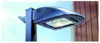 An aerodynamically styled fixture, this sharp cutoff area luminaire is designed for pole mounting up to 40 feet and is offered in one-, two-, three-, or four-fixture configurations. Constructed from cast aluminum, the fixture features ribbed styling details on the hood that enhance the design and dissipate heat. Fixture components can be replaced easily with tool-free lamp and ballast access, and a variety of light distributions can be achieved with specular segmented reflectors working in concert with a clear tempered glass lens.